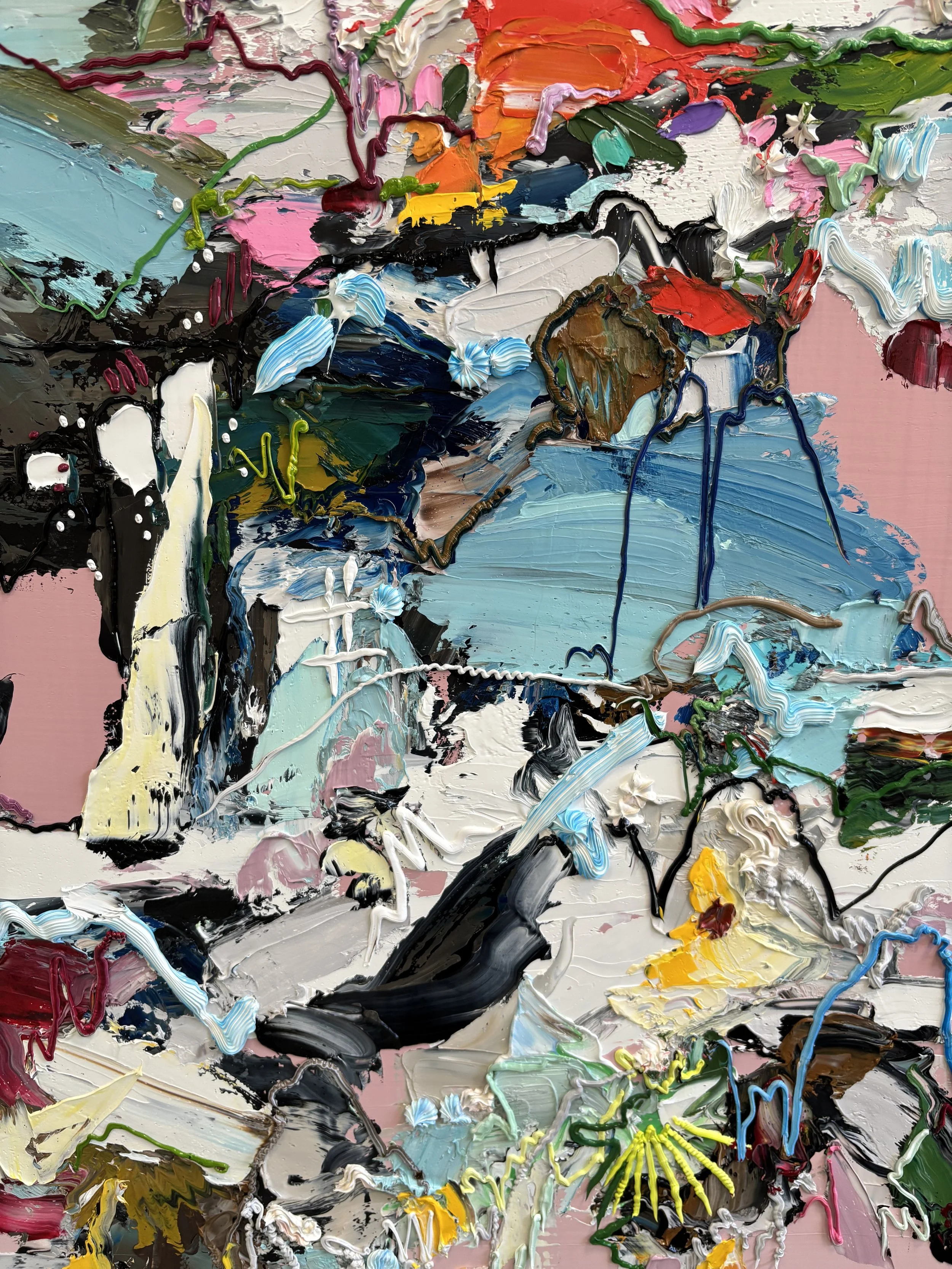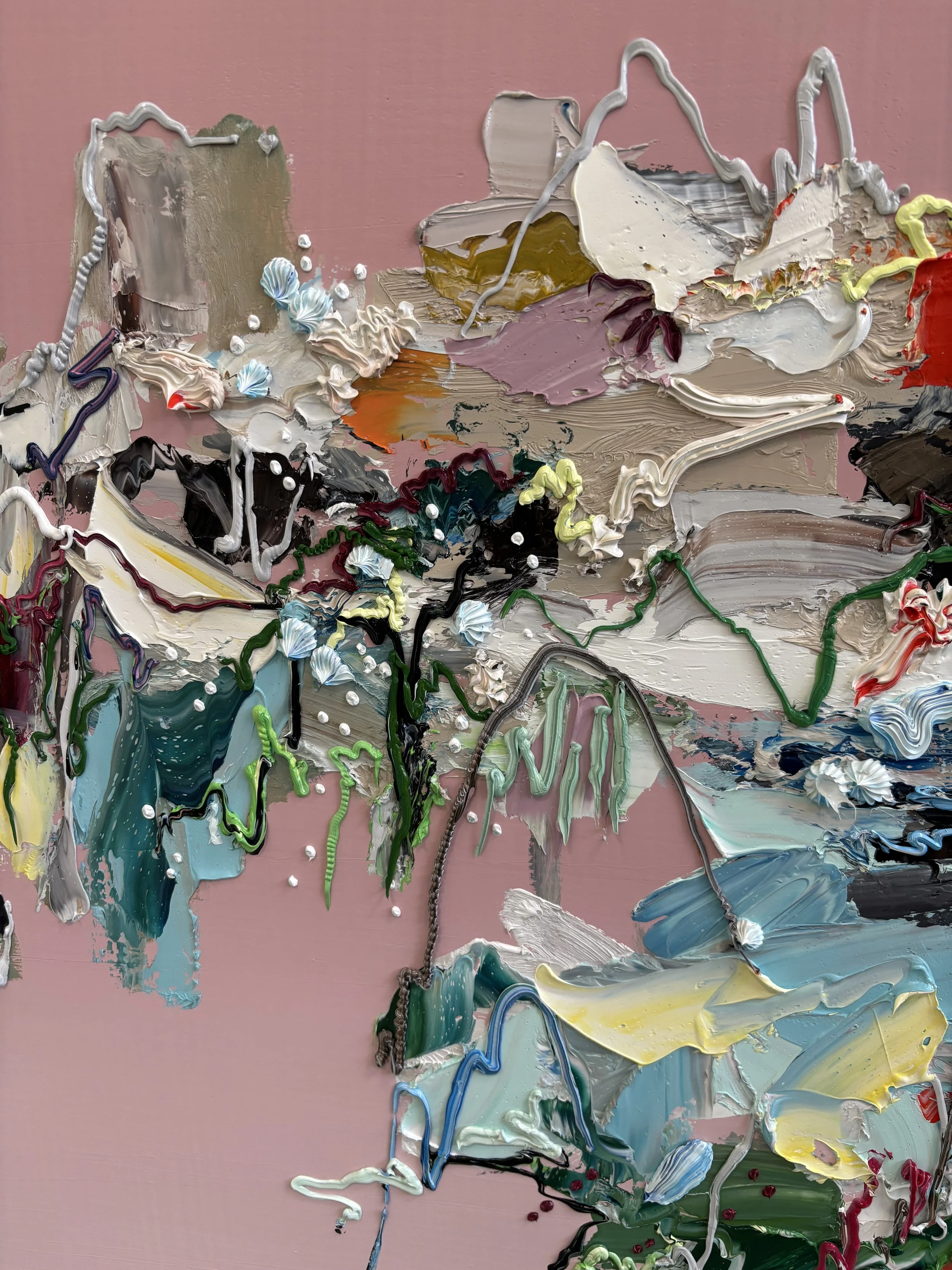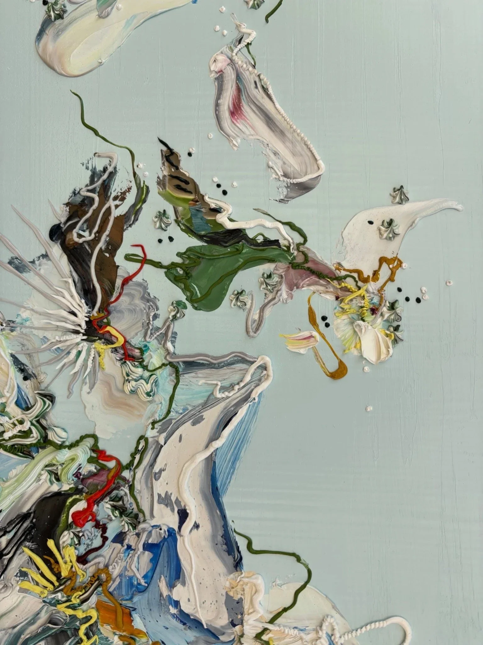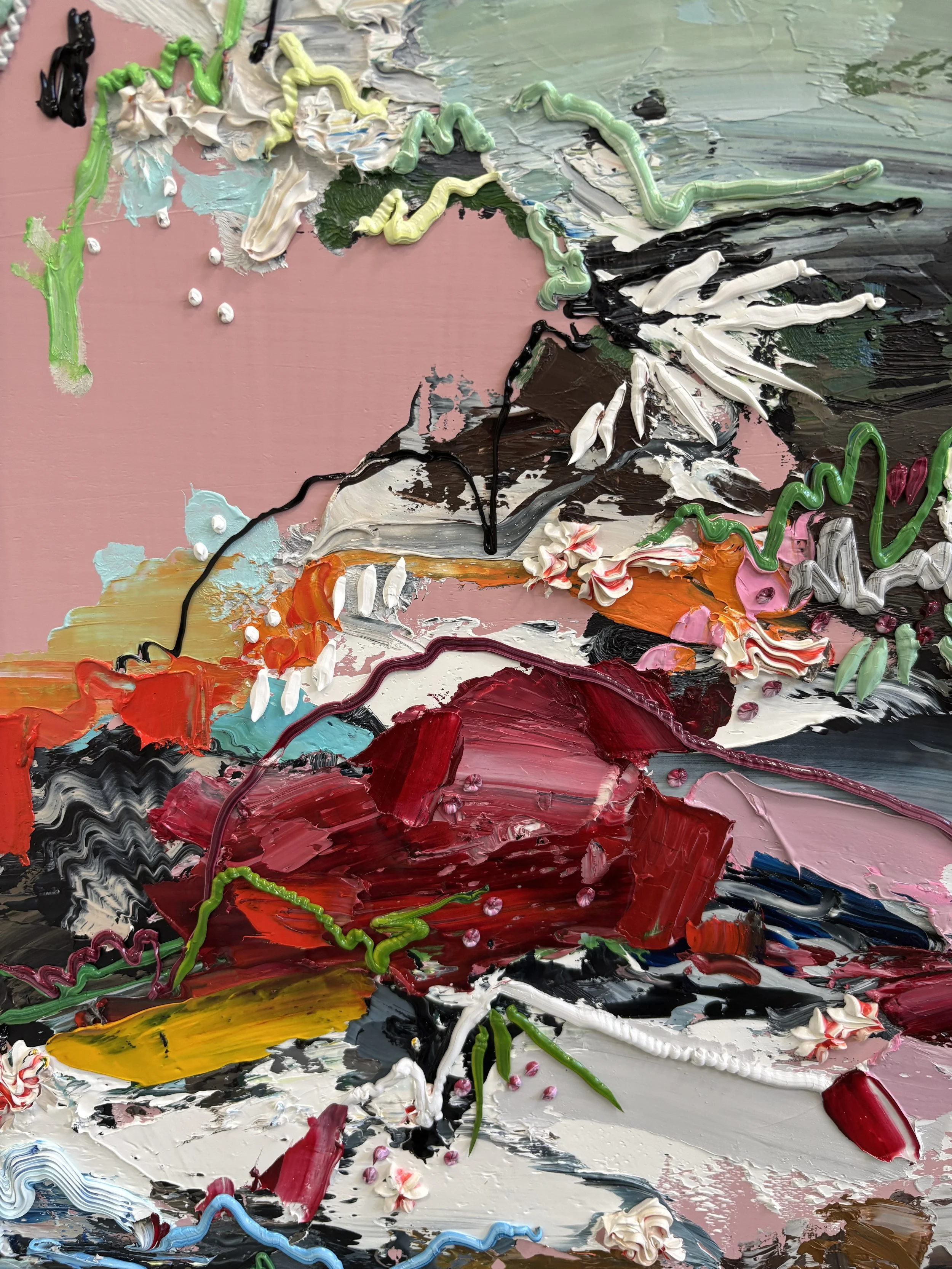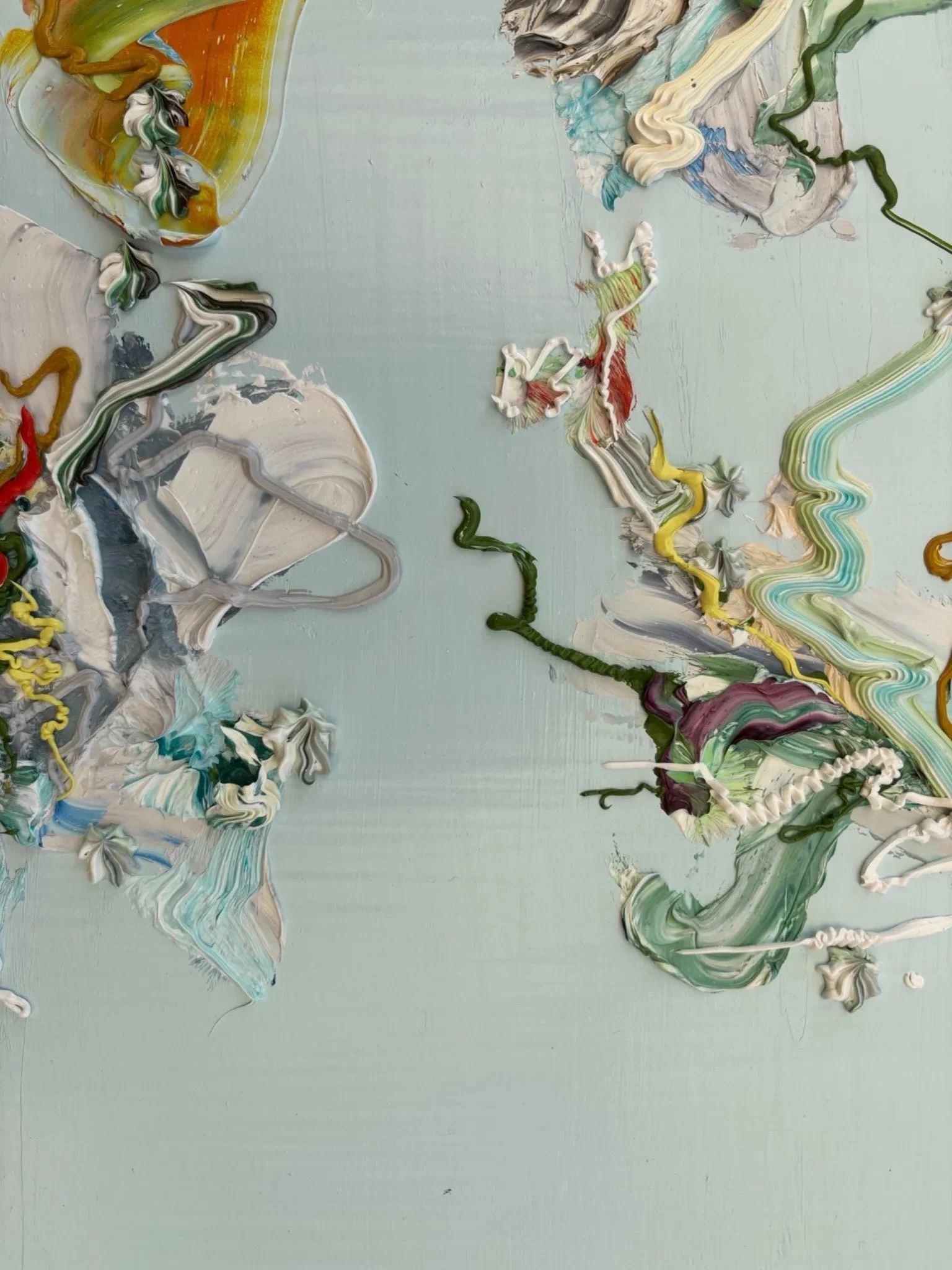 Nicole Katsuras’ approach embraces various traditions in art history while attempting to create a new formal vocabulary. Informed by the nuances of the oil medium and a plethora of visual stimuli, Katsuras uses a bold yet intricate extruded paint technique to compose lively, elegant, emotion-filled and playful abstract scenes.