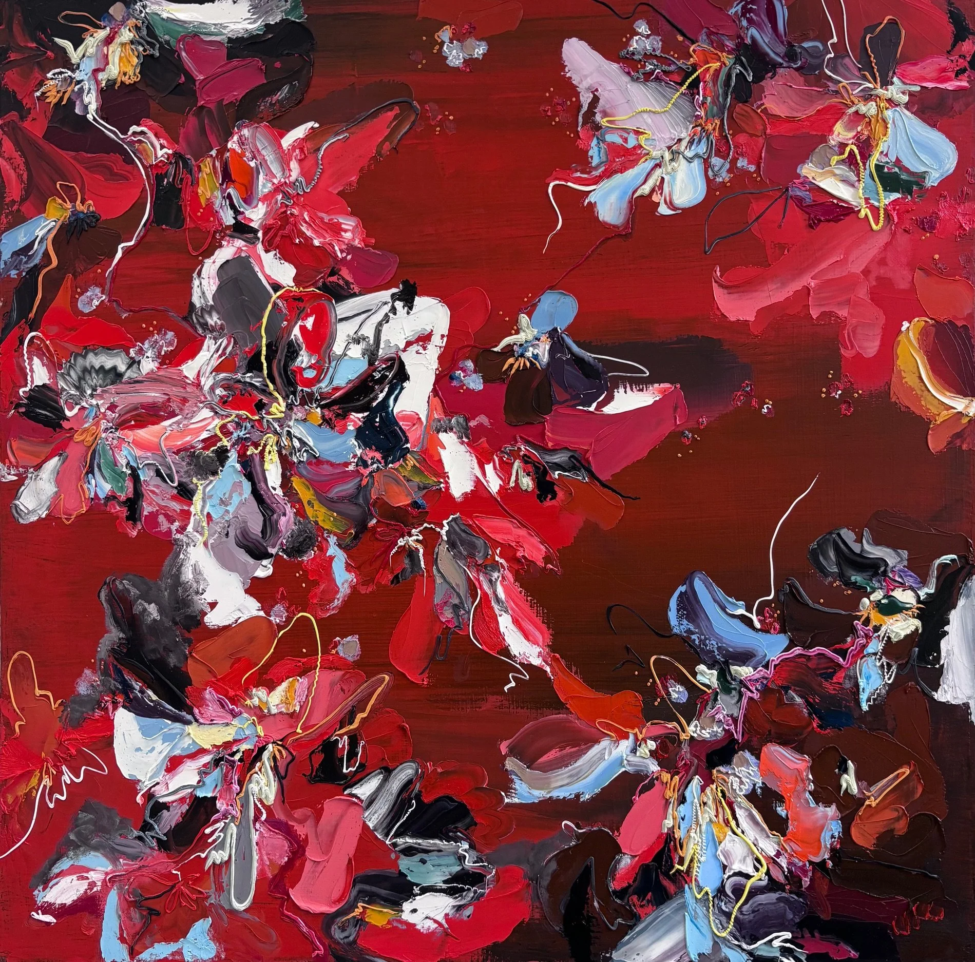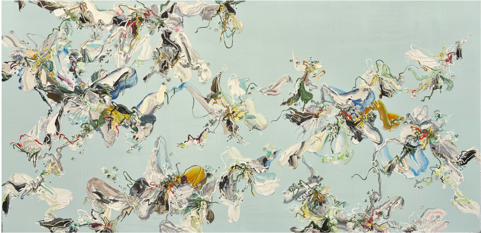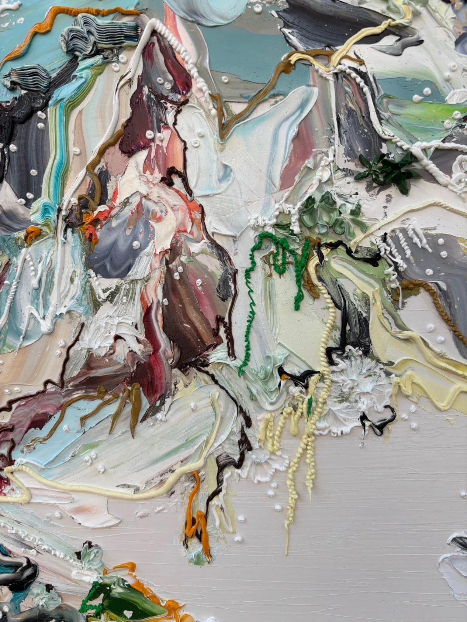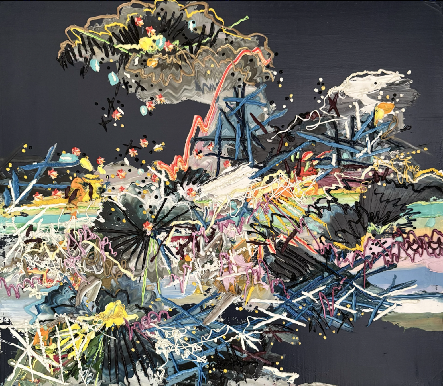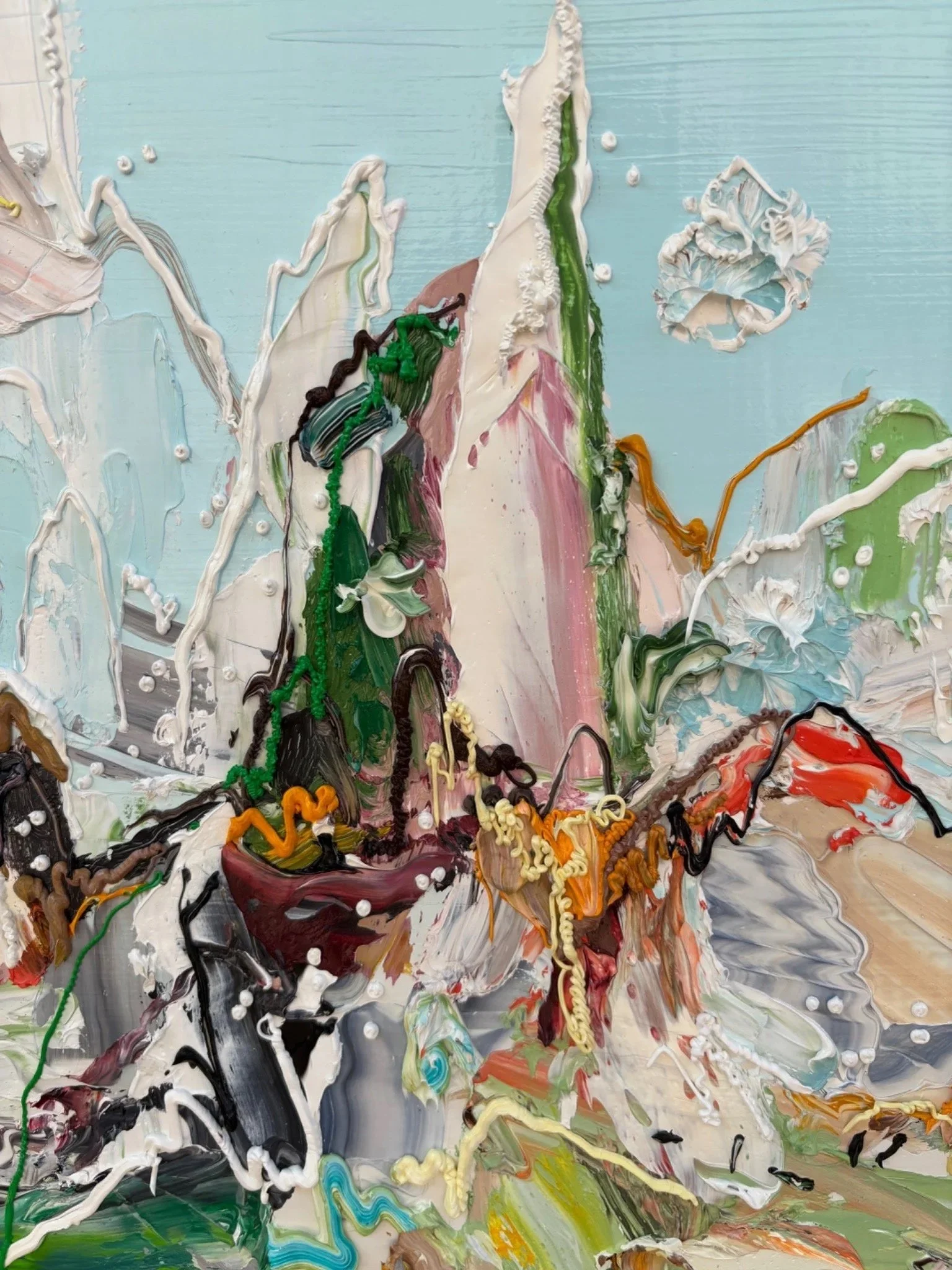 Nicole Katsuras’ approach embraces various traditions in art history while attempting to create a new formal vocabulary. Informed by the nuances of the oil medium and a plethora of visual stimuli, Katsuras uses a bold yet intricate extruded paint technique to compose lively, elegant, emotion-filled and playful abstract scenes.