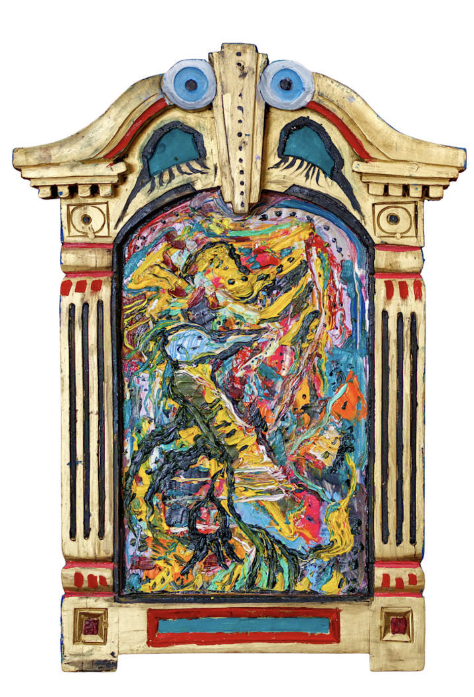 Gordon Massman (b. 1949) is a self-taught painter and poet based in Rockport, MA. Massman’s subjects, while usually psychologically distressed, are offset by a subtle sense of humor, either on the canvas itself or in witty titles. Parodying his own angst and that of the human race with poetic sincerity, Massman’s paintings are shameless confessions of the human psyche, unfolded in graphic, chaotic detail. Massman studied literature and creative writing at the University of Texas-Austin and the University of Alaska Fairbanks. He taught writing and literature at The Massachusetts College of Liberal Arts in North Adams, MA, and is the published author of five poetry volumes, having composed thousands of poems over a span of forty-five years. Massman has exhibited in the United States, and his work is in the collection of the deCordova Sculpture Park and Museum.