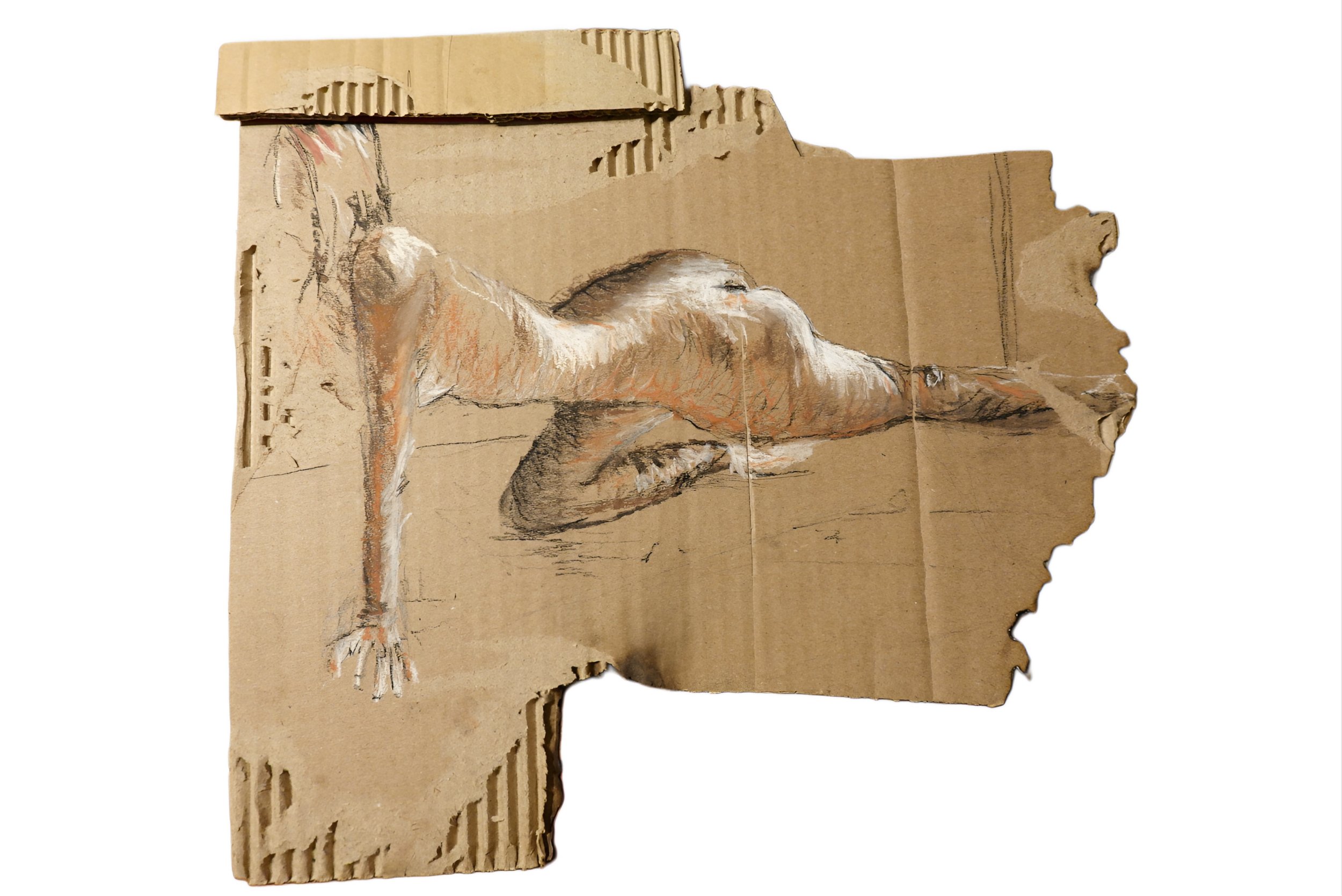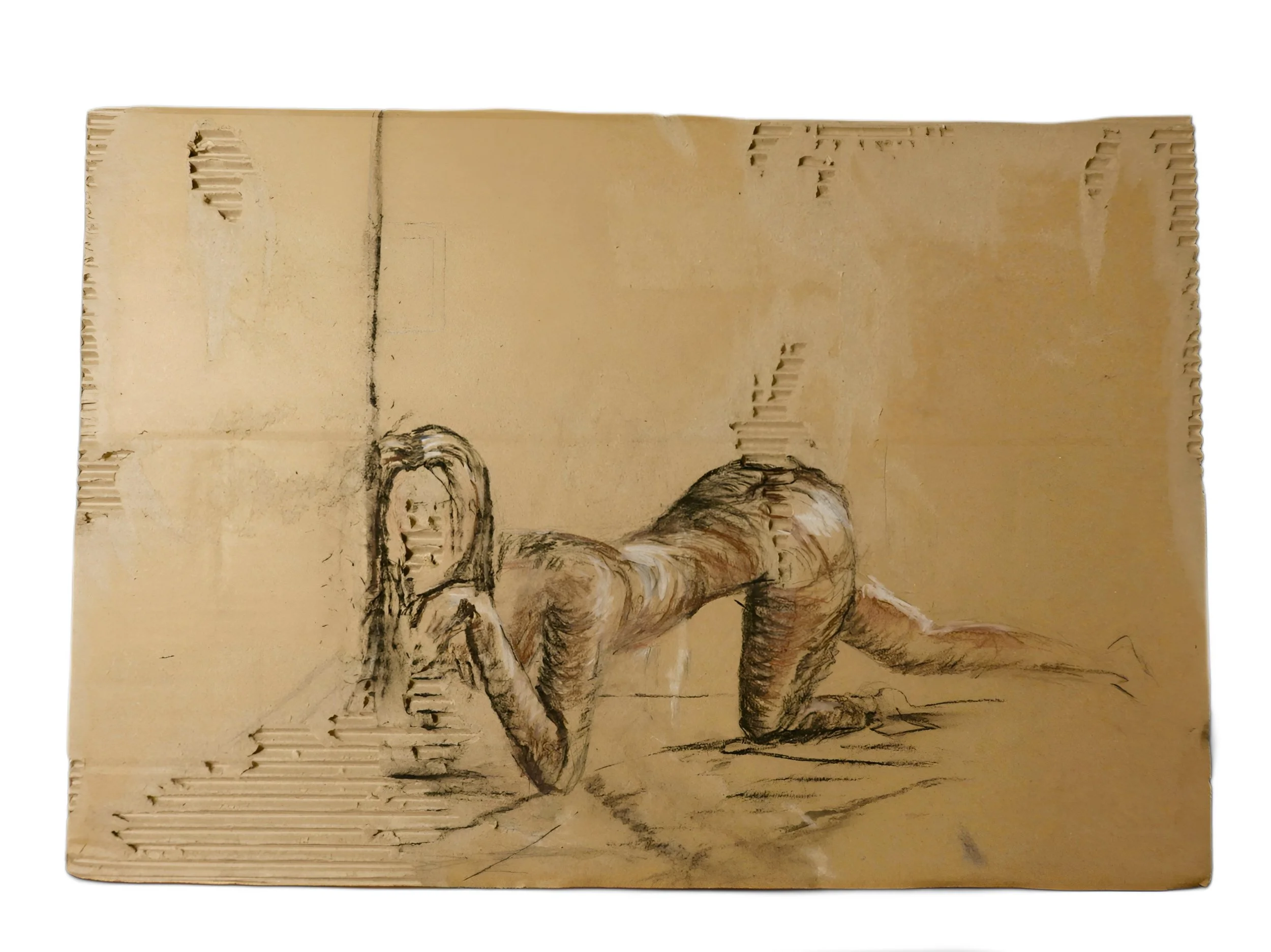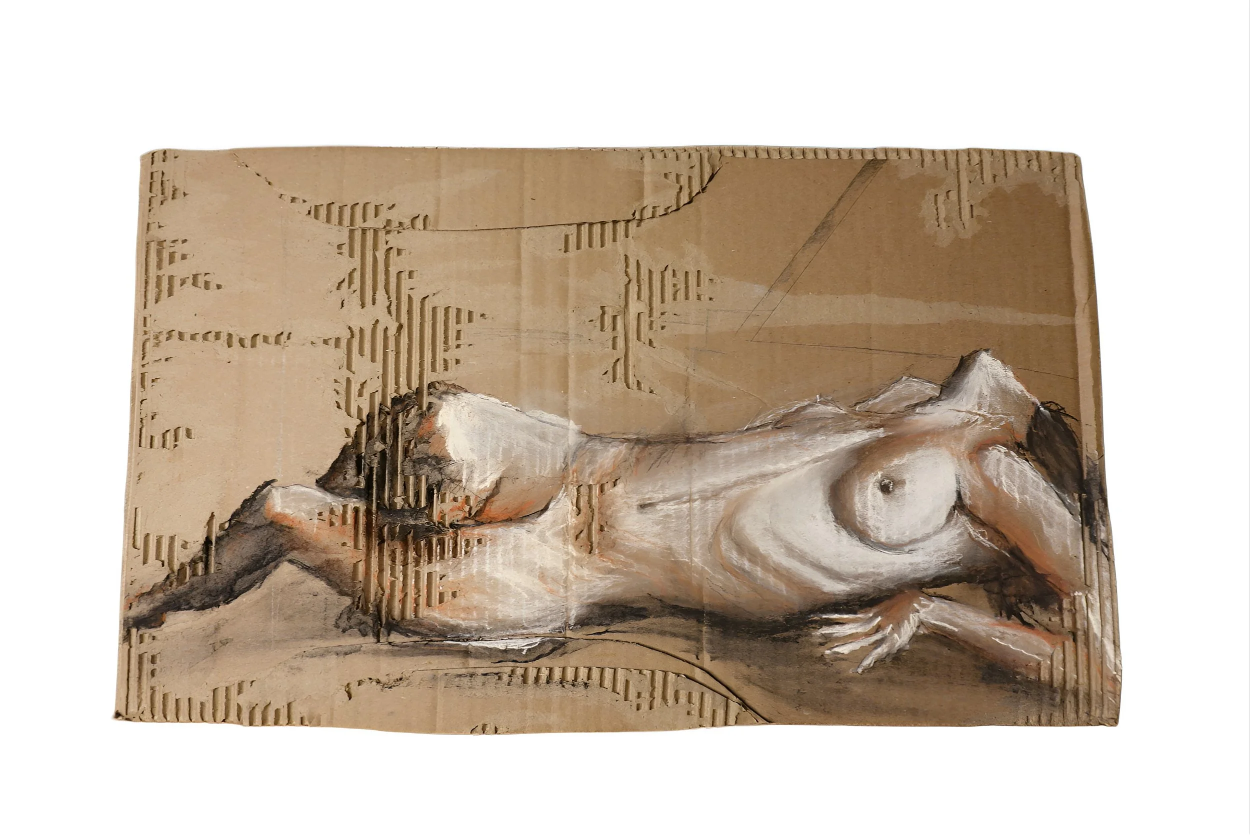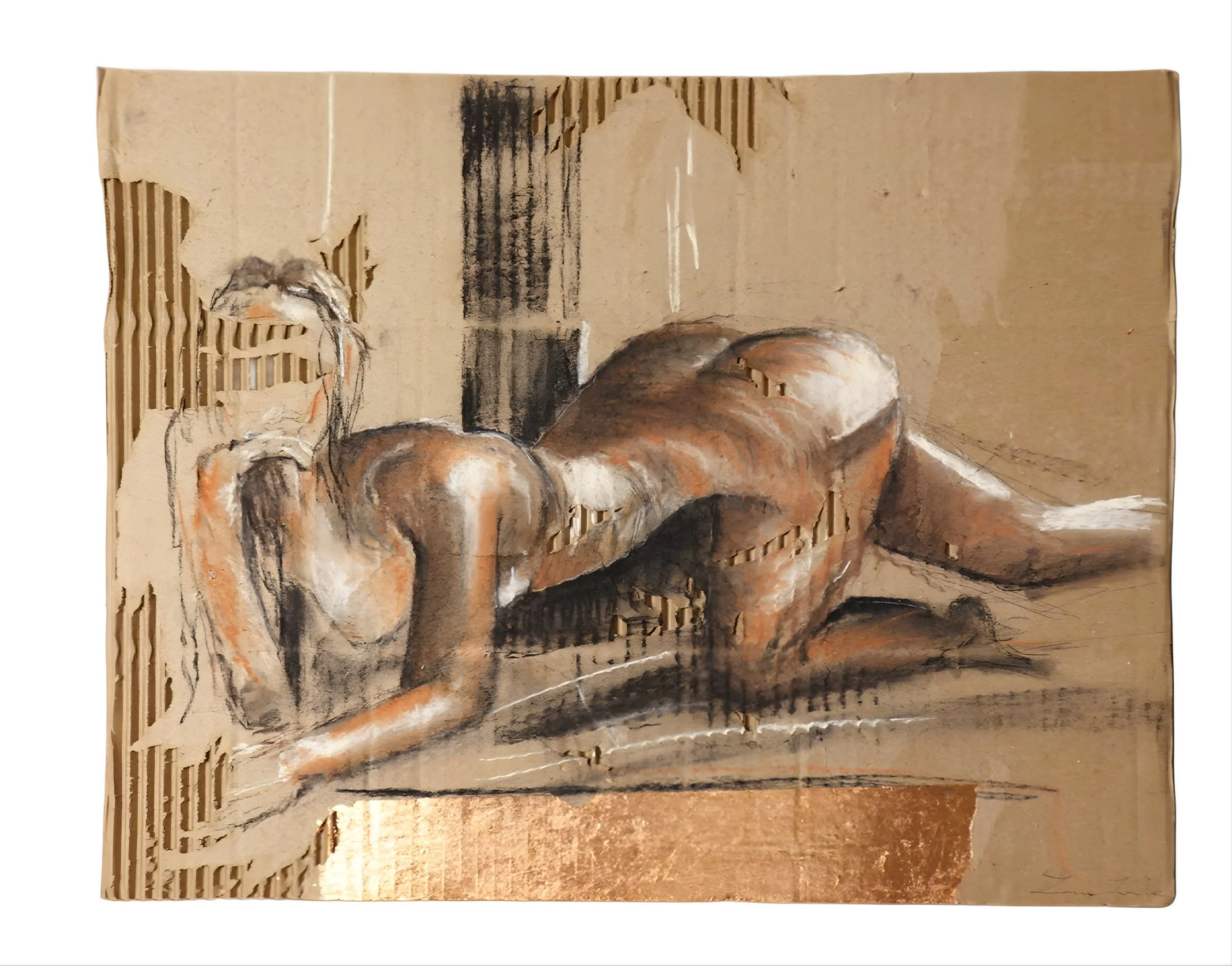 Laine Lovick is a New Orleans–based artist whose work spans atmospheric landscapes, architectural abstractions, and gestural studies of the human figure. She studied Studio Art at the LSU School of Design, where she developed a deep interest in interpreting form through movement and simplified, expressive mark-making. Her work draws on influences from architectural minimalism, classical figure study, and contemporary explorations of emotional presence. Laine’s practice merges structure and intuition to create pieces that explore resilience, identity, and the quiet narratives held within the human form. Her use of repurposed materials ties her practice to minimalism, pairing raw surfaces with raw media such as charcoal and conté. This approach distills the human form to its essentials, emphasizing immediacy and the integrity of the gesture.