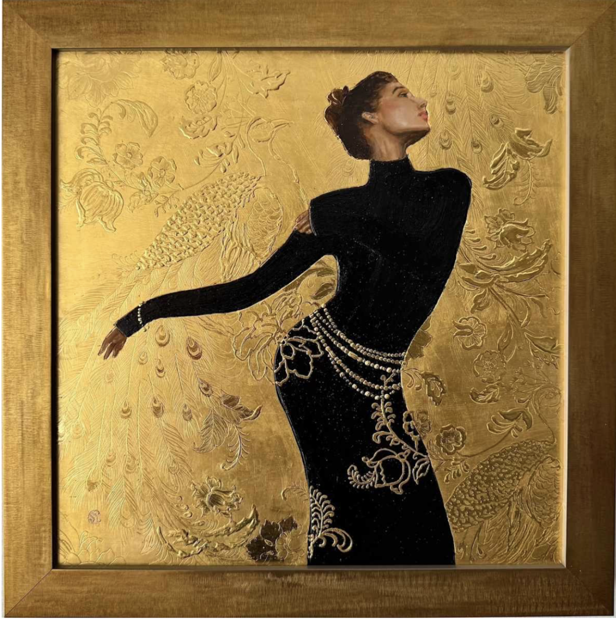 Shirley Yang Crutchfield is a Chicago-based artist whose gold-leafed works draw on art history, fashion, contemporary heroines and her own entrepreneurial journey. She uses traditional 14th-century Italian gilding methods to create portraits of women that shine both literally and symbolically with beauty, grit, and timeless strength. Her work is influenced by Byzantine art, Renaissance, Baroque and contemporary aesthetics, fashion, and the portrayal of strong female figures. Shirley has exhibited at galleries internationally, including Sun Valley Contemporary (Sun Valley), Dacia Gallery (New York), Chicago Fine Art Salon (Chicago), Echo Park Art (Los Angeles), and Las Laguna Art Gallery (Laguna Beach), and her work has won several international awards.